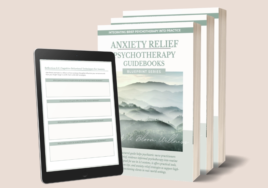 That's why I created evidence-informed, skill-based tools designed specifically for Psychiatric Nurse Practitioners, so clients walk out not just feeling better, but knowing what to do next. Anchor & Bloom Wellness was built to make that level of care possible within medication management visits. These tools are designed to complement, not replace, full psychotherapy.