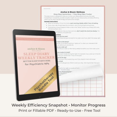 This free diary is included in the Better Sleep Psychotherapy Bundle. It provides the structure required to identify patterns, calculate sleep efficiency, and implement targeted behavioral interventions within medication management visits.