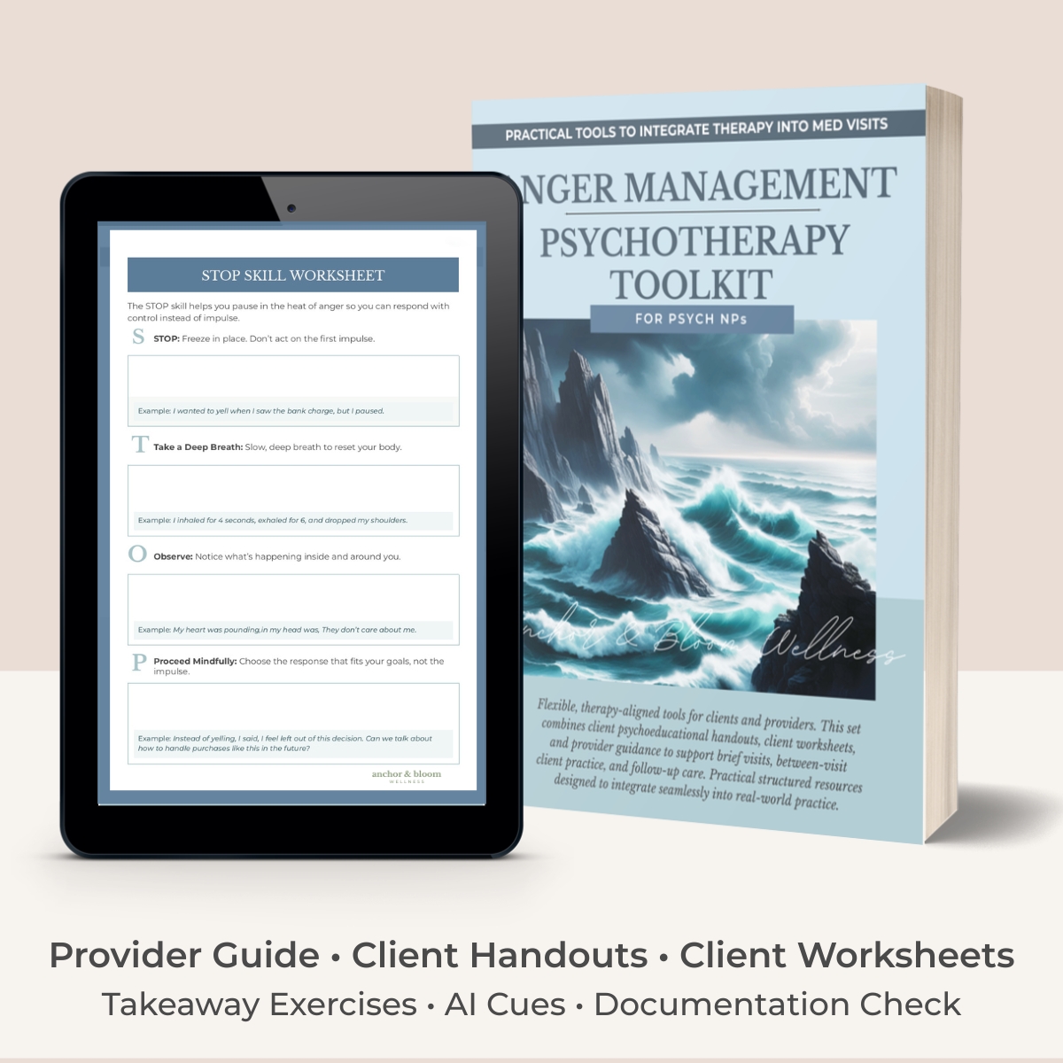 Ready to use handouts + worksheets. make brief therapy in med visits simple, effective, and billable.