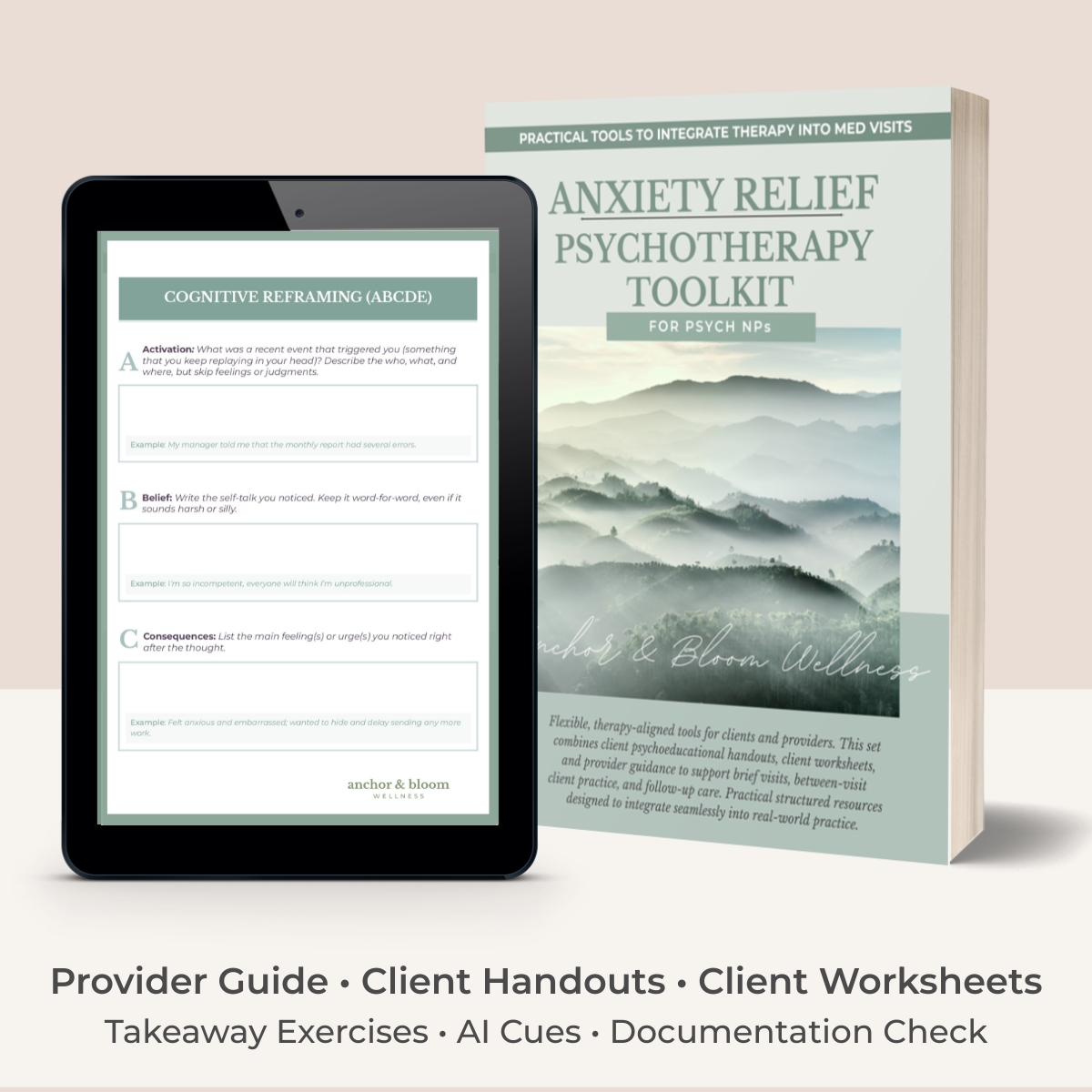 Ready to use handouts + worksheets. make brief therapy in med visits simple, effective, and billable.